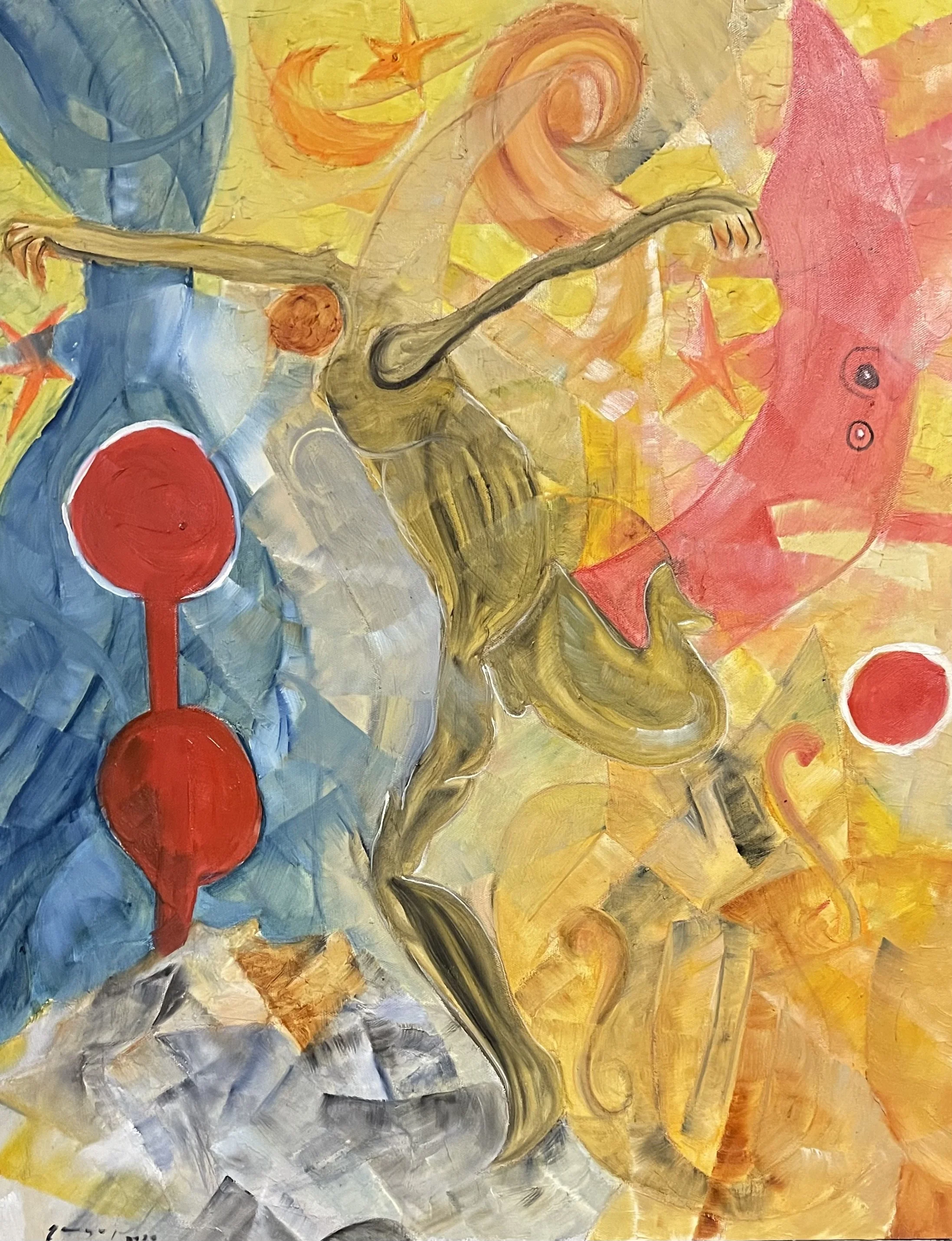 "Jubilo" captures this story in oil on paper, 22x28 inches. The artwork conveys intense emotions through vibrant colors and expressive brushstrokes, inviting the viewer to immerse themselves in a moment of pure joy.